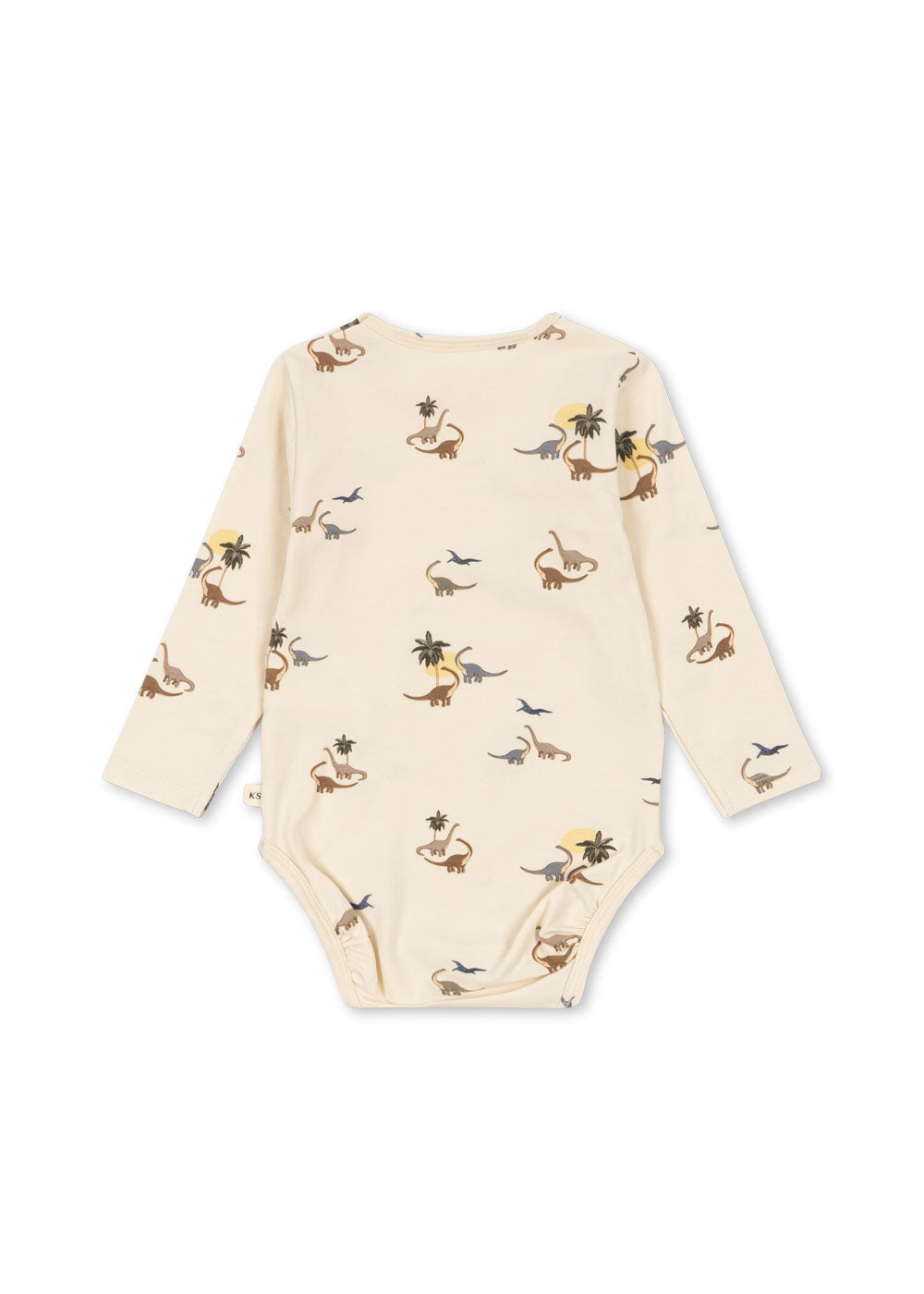 Soft long-sleeved body made from organic cotton mixed with elastane for durability and a hint of stretch. Designed with snap buttons at the crotch for easy dressing.