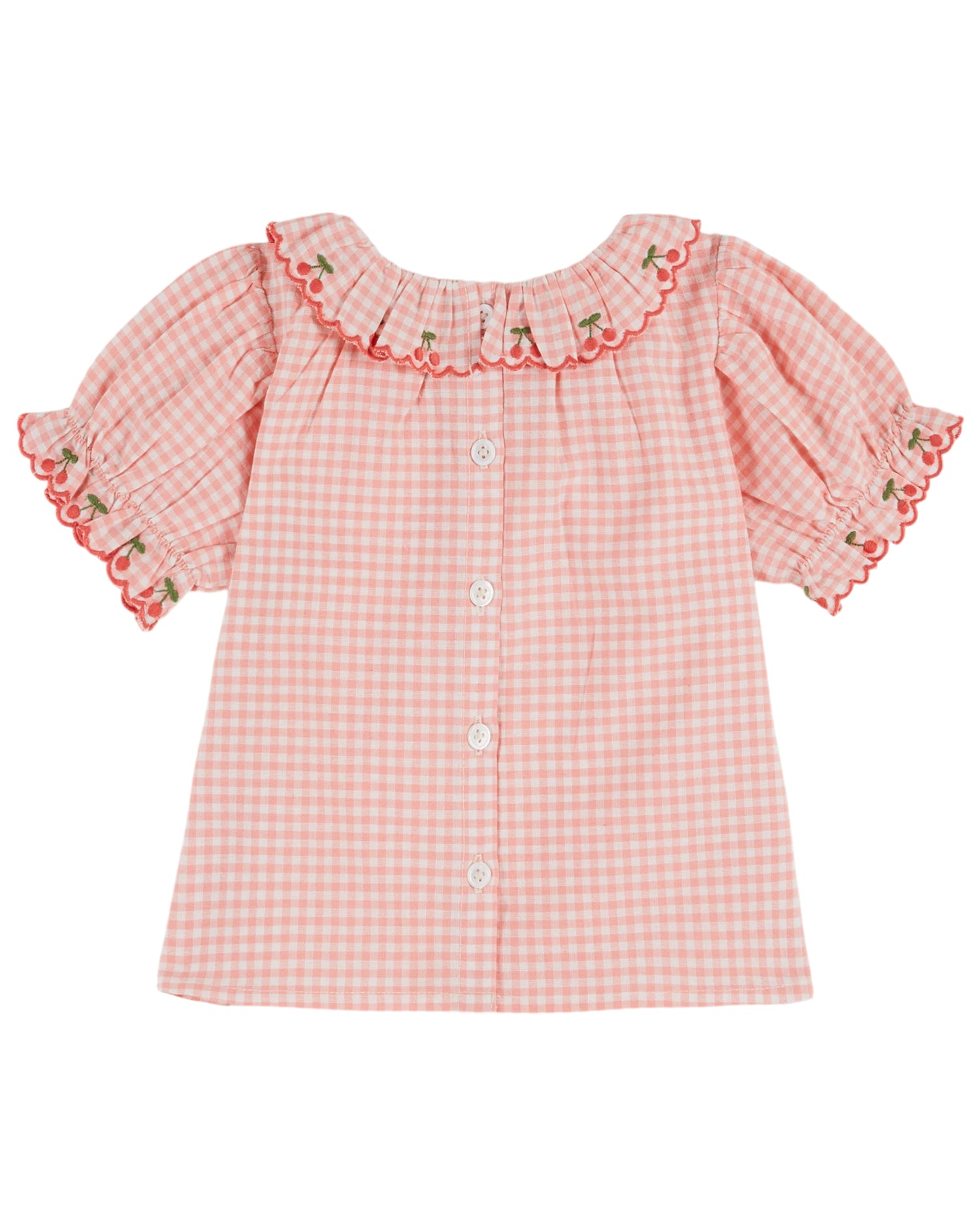 blouse | pink gingham embroidered collar