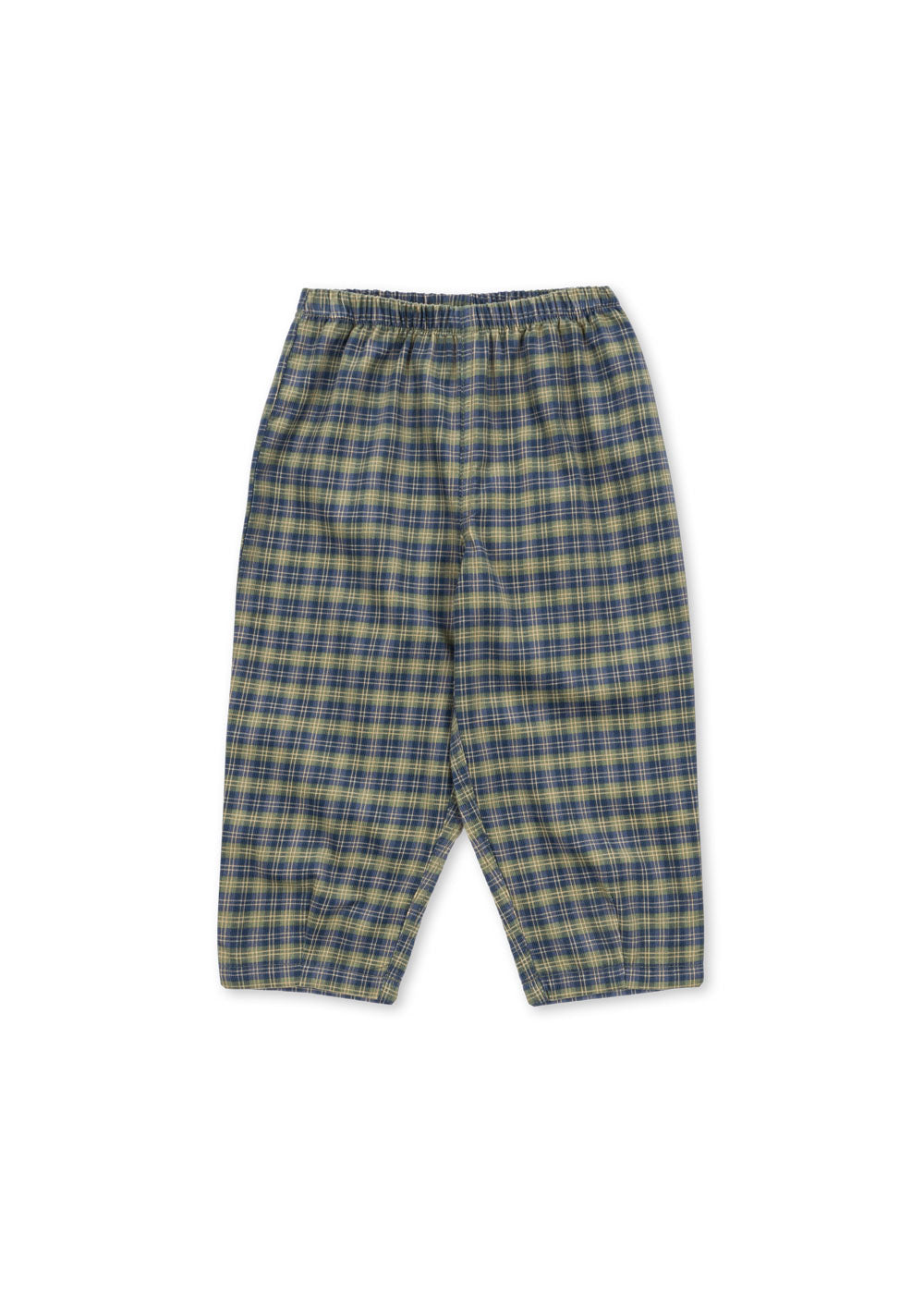 Soft pants crafted in a tactile corduroy fabric. Designed with straight legs, elastic waistband, and gatherings at the ankle cuffs.