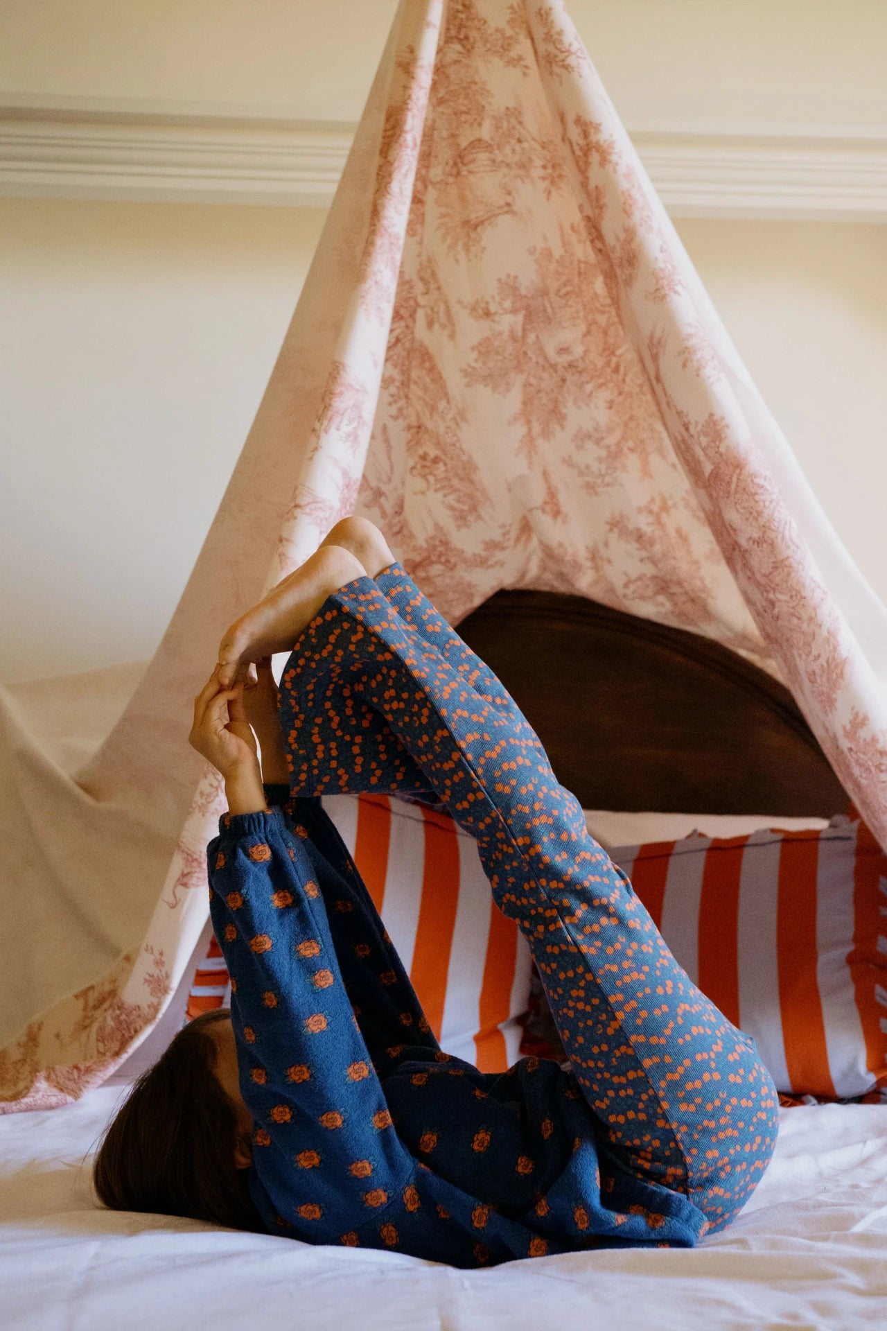 Crafted from a soft organic cotton blend, these Mini Apples printed flared pants offer the perfect balance of style and comfort. They feature an elasticated waistband for a relaxed, secure fit.