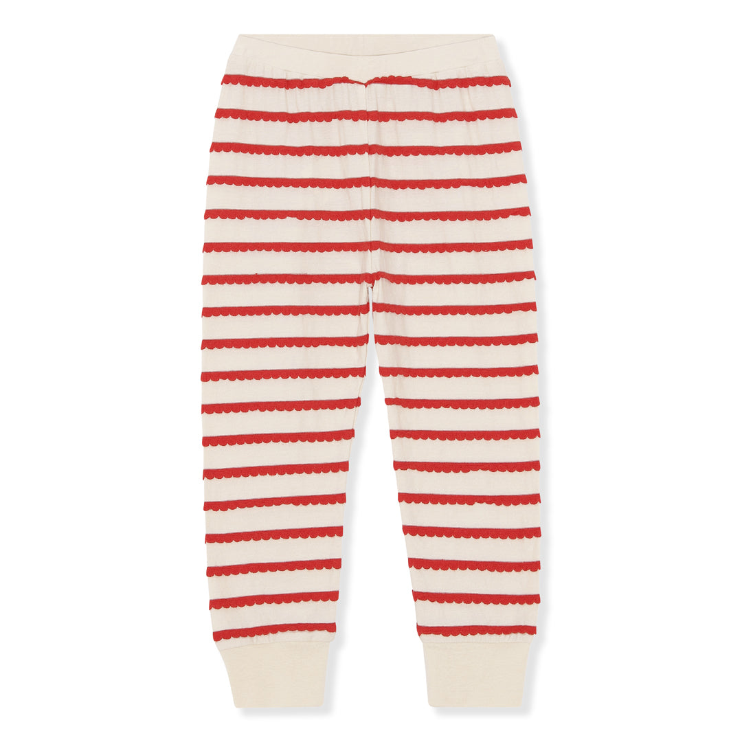 Soft pants made in 95 percent organic cotton and 5 percent elastane. Designed with an elasticated waist, elasticated cuffs and wavy laces