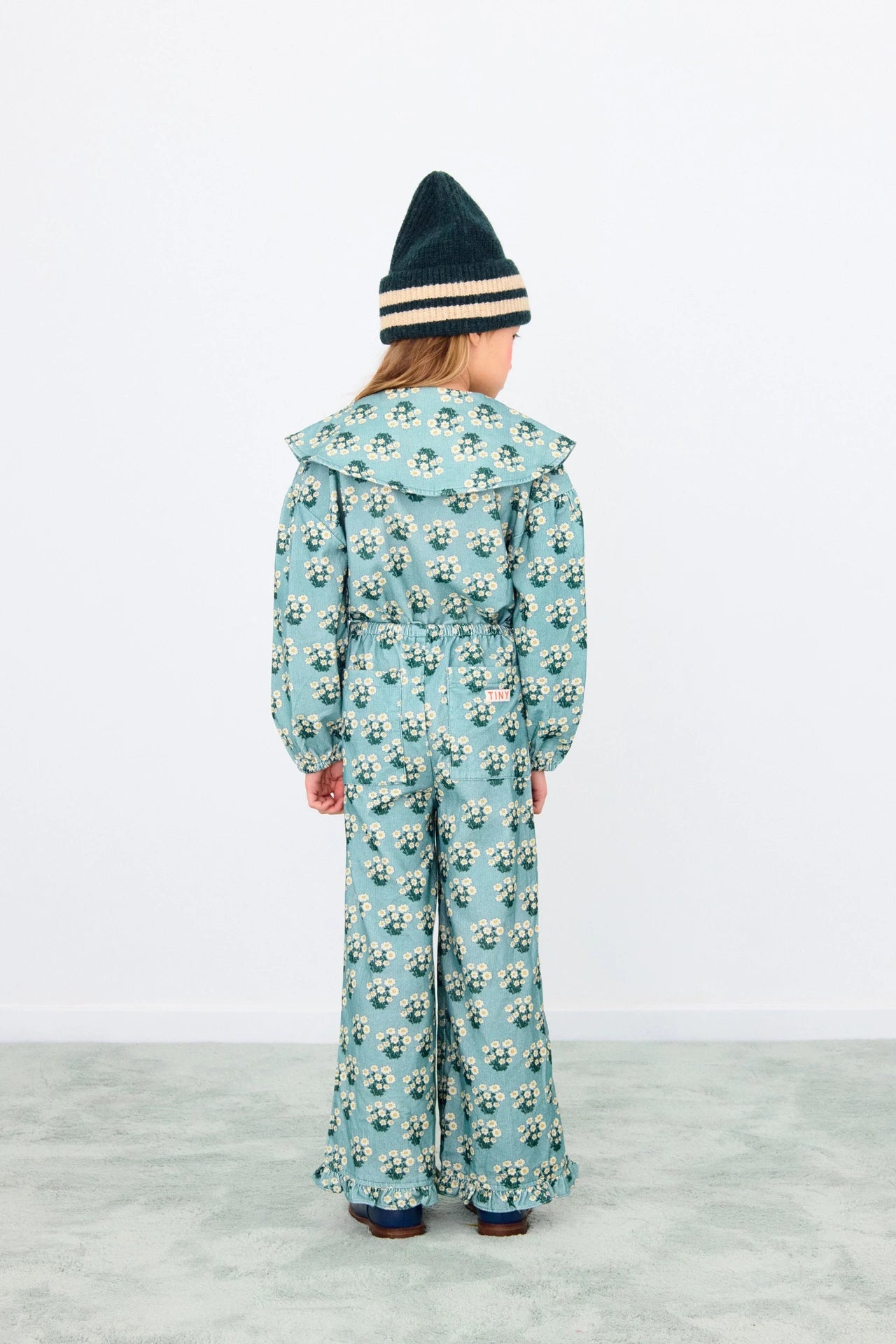 This White Bouquet print shirt is made from soft 100% cotton corduroy fabric. It features long sleeves with elasticated cuffs, a wide rounded neckline, and a front opening for a relaxed fit. The soft, breathable fabric is gentle on the skin, making it perfect for casual outings or cozy days at home. This shirt offers both style and comfort with a clear focus on quality.